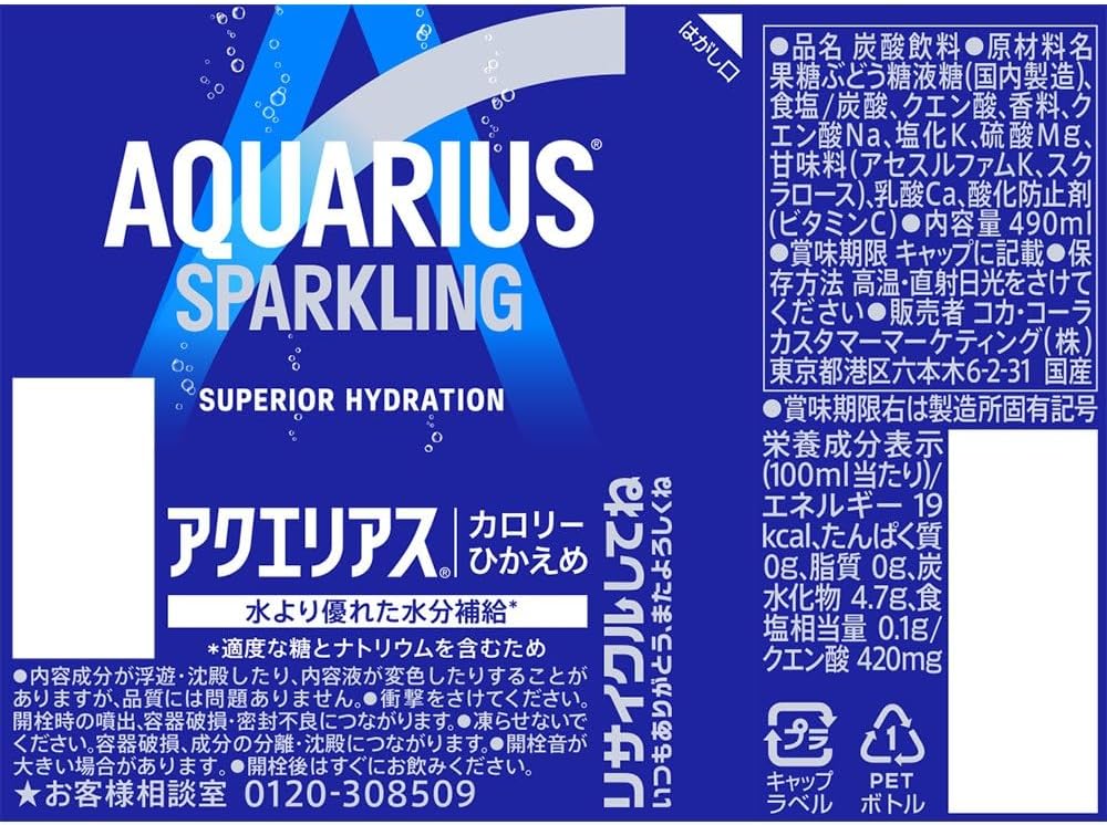 「24本」アクエリアス スパークリング 490ml ×24本入×1箱 コカ・コーラ