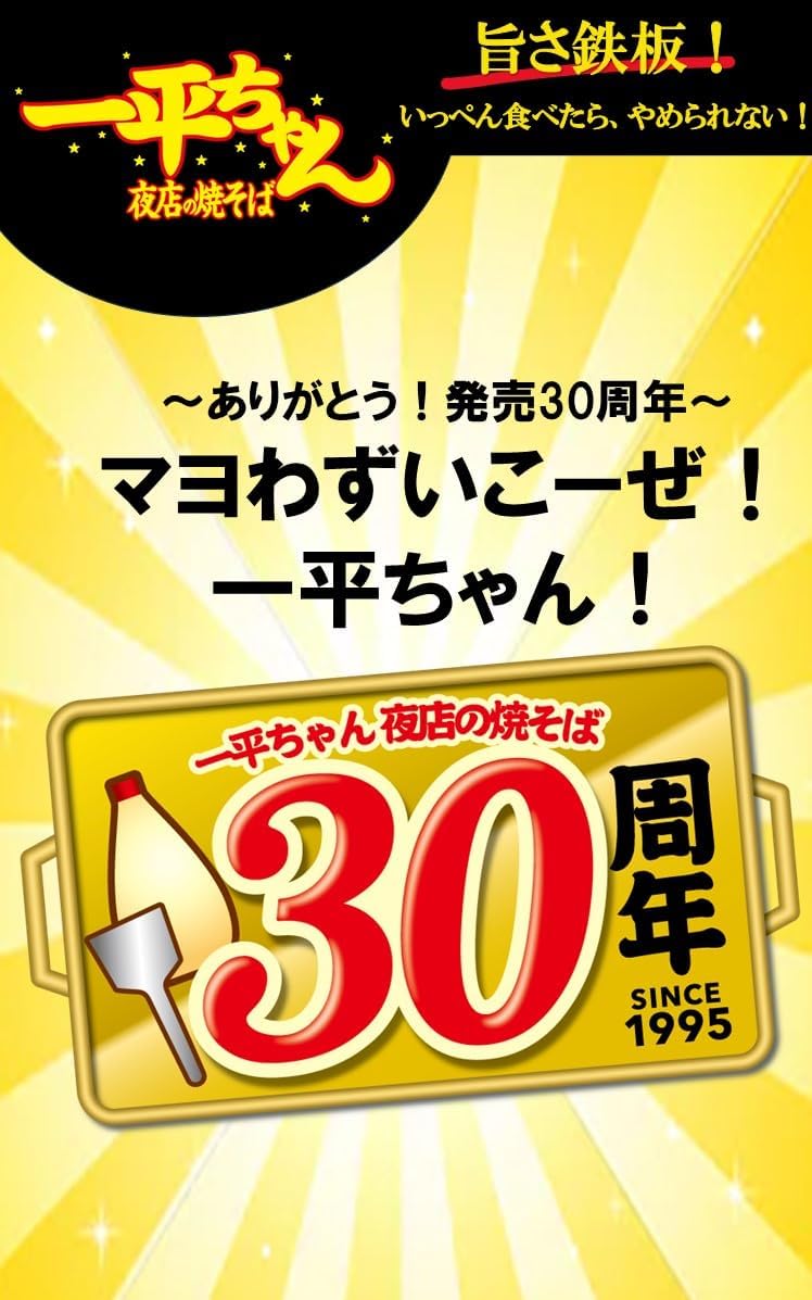 パッケージは、一平ちゃん発売30周年をお祝いするアイコン付きです。
