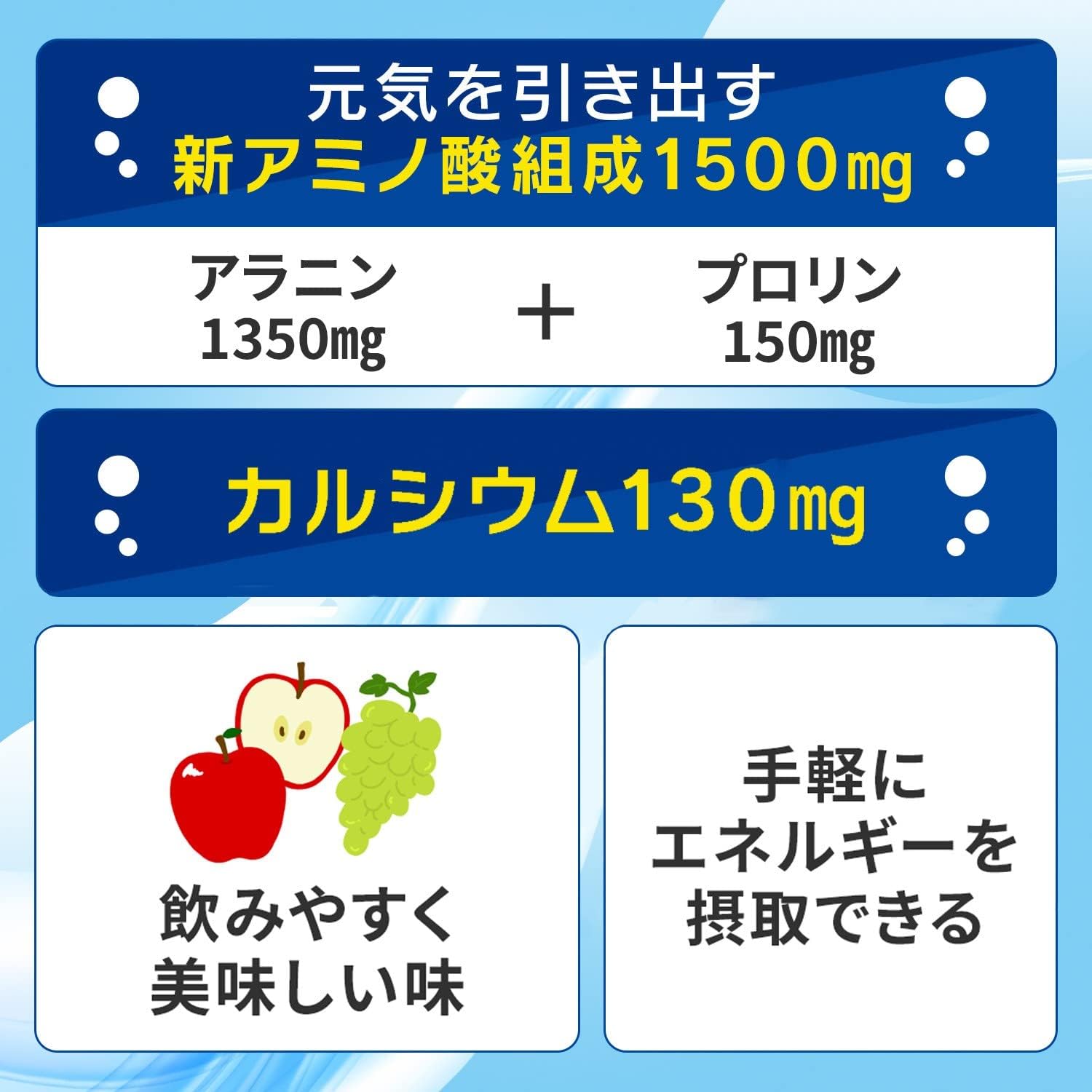 デキストリン(国内製造)、ショ糖、濃縮リンゴ果汁/クエン酸(Na)、アラニン、乳酸Ca、ゲル化剤(増粘多糖類)、プロリン、塩化K、香料、甘味料(アスパルテーム・L-フェニルアラニン化合物)、V.C、V.E、ナイアシン、V.A、V.B1、V.B6、V.B2、葉酸、V.D、V.B12